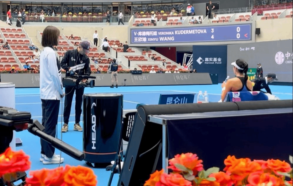 转播保障服务岗在赛场上配合摄影师完成拍摄