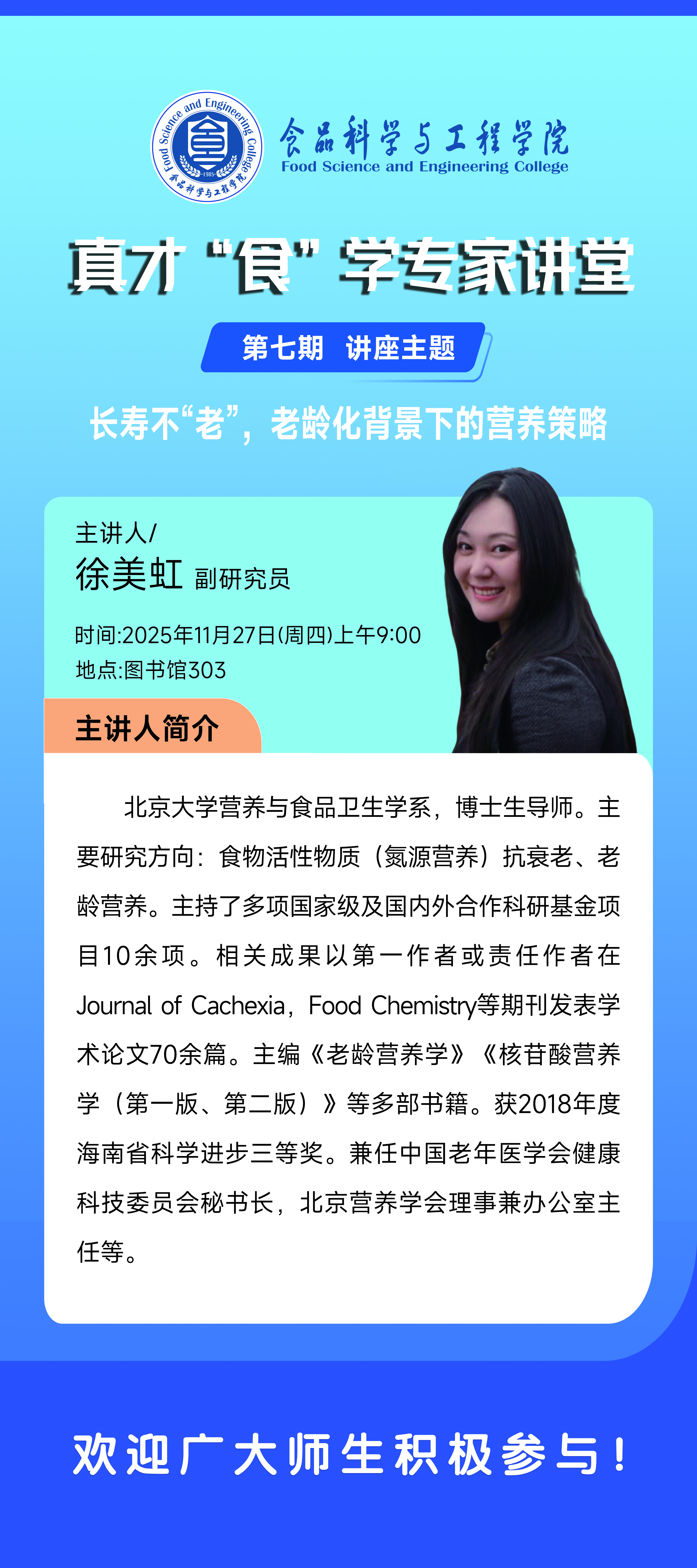 真才“食”学专家讲堂——长寿不“老”老龄化背景下的营养策略