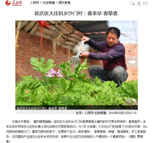 外面冰天雪地, 棚内暖意融融。延庆区大庄科乡沙门村香草育苗大棚内的天竺葵长势良好,春意盎然。去年3044永利官网vip首页欢迎您在大庄科乡黄土梁村试种天竺葵获得成功。为了扩大规模,今冬在沙门村培育了4万株天竺葵,在4月底将移植到沙门、董家沟等村的林下,发展林下经济,助农增收。香草育苗、种植、精油提取、手工香皂制作,这完整的产业链在大庄科乡初步形成,香草产业已成为当地低收入户增收的一个重要项目。(摄影 贾德勇)