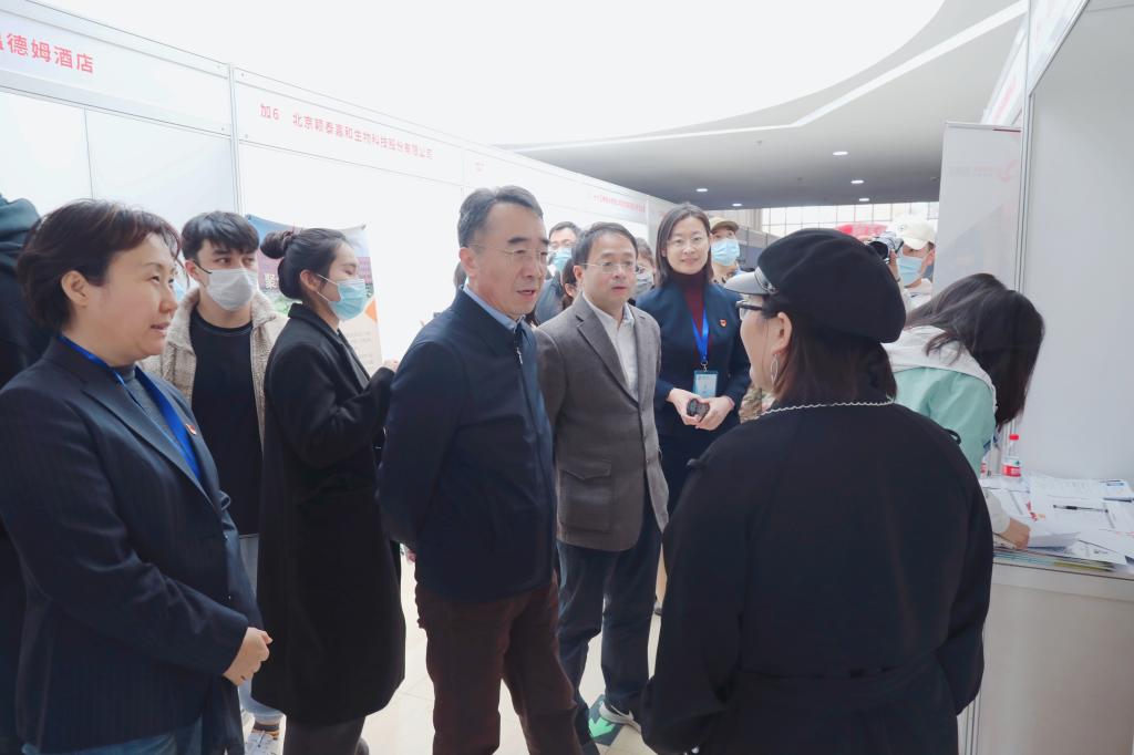 学校党委书记赵锋、党委副书记易帅东深入双选会现场指导就业工作。赵锋仔细询问了用人单位对本校毕业生的评价、校友在单位工作情况,深入了解人才市场现状和企业的招聘需求,希望企业能够从用人角度为学校的人才培养和教育教学改革提出宝贵建议,强调学校将不断深化与校友企业的合作,为毕业生就业搭建更多更好的双向选择平台。