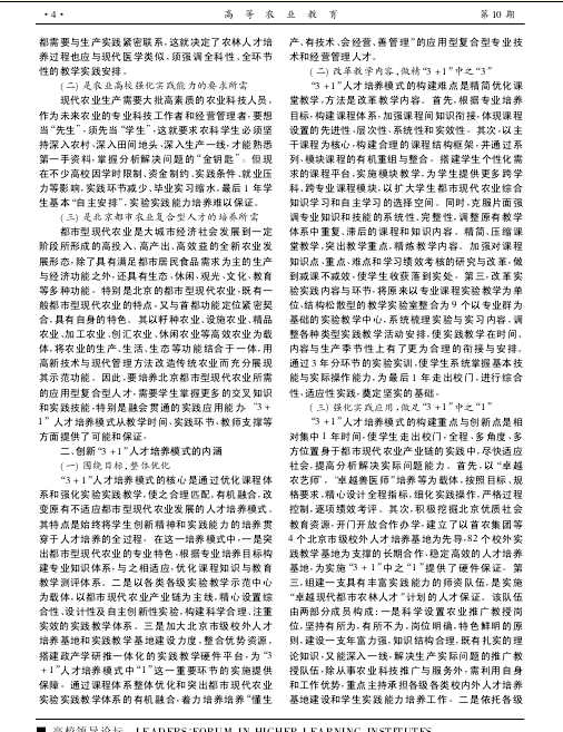 创新“3 +1”人才培养模式,强化都市农业人才实践能力