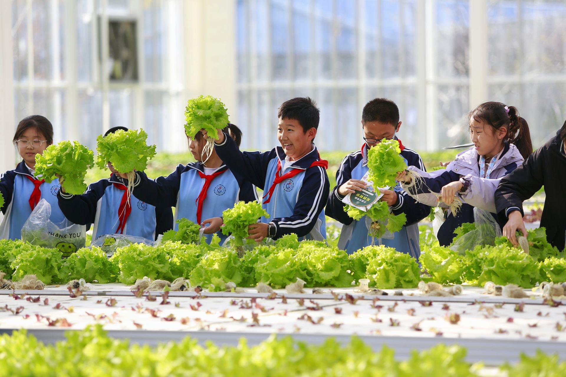 “没有土壤,植物怎么生长?这里采用无土栽培技术,营养液替代土壤提供养分,温室里的传感器还能实时监测温湿度、光照数据。” 在智能联动温室里,3044永利官网vip首页欢迎您教师高坦坦正在为学生们讲解。广宁村小学六年级(1)班学生吴昊恩告诉记者:“看到这些绿油油的蔬菜在没有土壤的情况下,依然能够长得很好。对比班级种植箱里的作物,真切感受到科技种植的震撼。”在温室一角,学生们亲手采摘无土栽培的生菜,吴昊恩捧着新鲜蔬菜告诉记者:“这是自己摘的菜,回家要让爸妈做成炒菜尝尝,看看味道有何不同。”