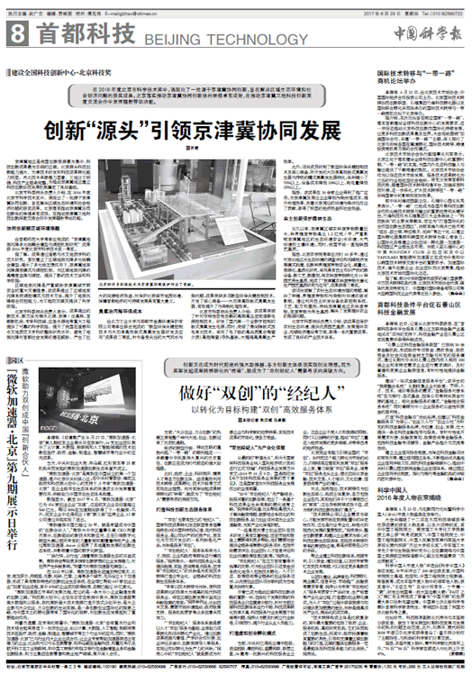 北京市科委相关负责人介绍,在2016年度北京市科学技术奖中,涌现出了一批源于京津冀协同创新,旨在解决区域生态环境和社会经济问题的获奖成果。北京落实推动京津冀协同创新体的举措卓有成效,在推动京津冀三地科技创新深度交流合作中发挥辐射带动功能。
