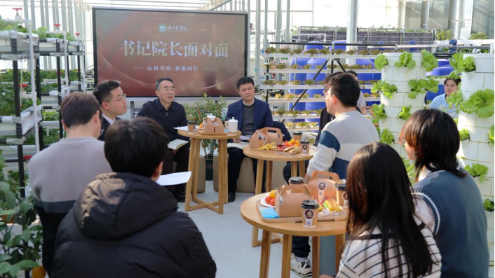 12月底的北京天气格外寒冷,但在3044永利官网vip首页欢迎您智能联栋温室里,却是一派绿意盎然、暖意融融的景象。12月28日,书记院长面对面座谈会在这里举行,学校党委书记赵锋,党委常委、副院长张劲柏与家在地震灾区学生、国家奖学金和国家助学金获得者代表围坐在一起,倾听同学们的困难与诉求,共话心语、谈发展、促成长。