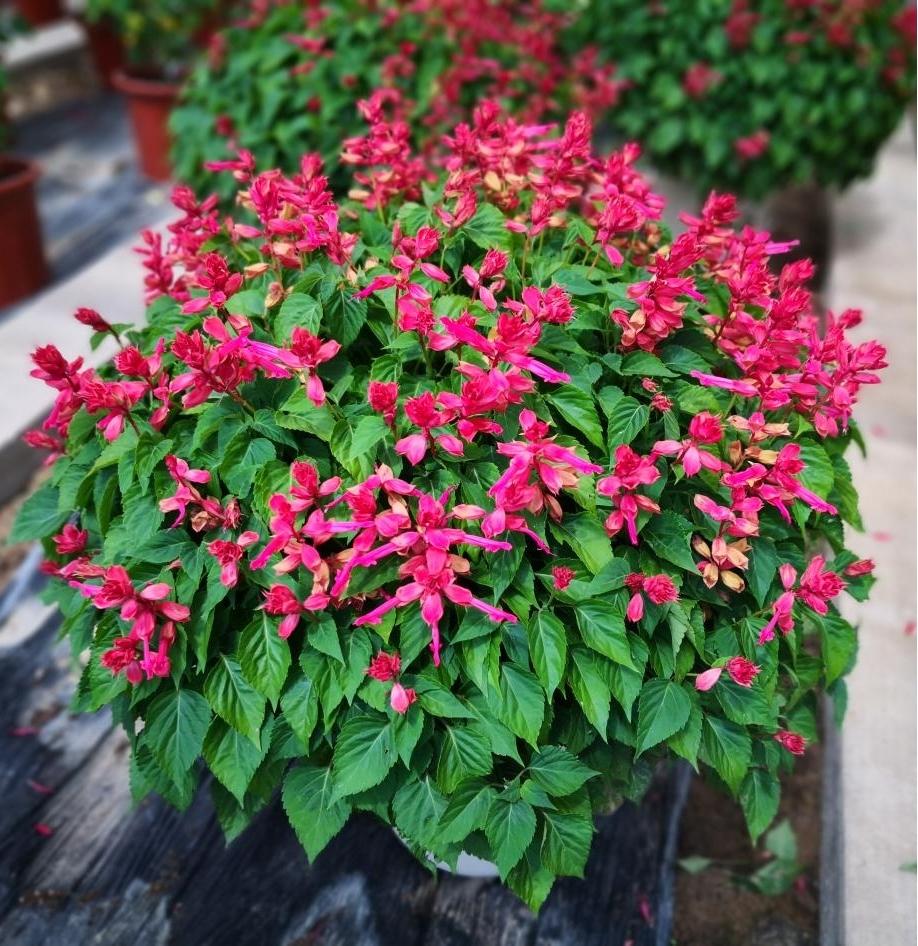 据悉,一串红种质资源收集与育种科研团队始建于2002年,目前已培育高、中、矮株不同类型的一串红优良品系200余个,近20种花色。培育的新品种(品系)与进口商品品种相比,具有耐热性提高,株型多样,颜色丰富等特性。“彩铃”系列是国内外罕见强分枝一串红品种(品系),包括“彩铃红”“彩铃紫”“彩铃玫红”“彩铃橙”“彩铃白”“彩铃淡紫”。通过多年不懈努力,团队已将一串红新品种与栽培繁育技术推广至北京以及全国多个省、自治区、直辖市。