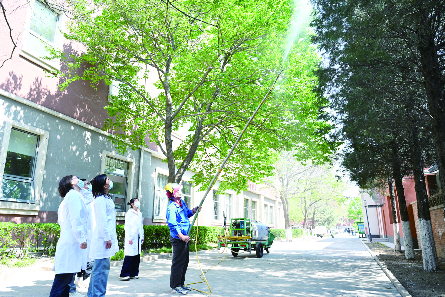 在取得初步成效的基础上,团队今年继续在校园中进行中试实验,观察疏雄剂和沉降剂1号对环境的长期影响,确保试剂的稳定性。目前,市区多个园林绿化部门已经联系该团队商谈合作,希望推动科研成果尽快转化应用,2026年有望在东城西城等6个区投入使用。团队希望在下半年选择天坛公园、奥林匹克森林公园等几处圆柏集中区域进行试点,明年春天前往这些地点的市民就能亲眼看到试剂的使用效果。
