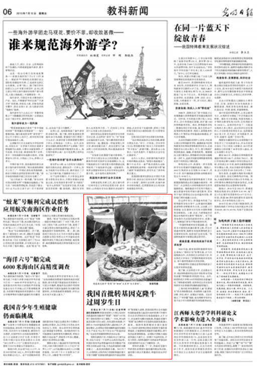 本报北京7月11日电(记者邓晖 通讯员张丽萍)我国首批转入大理石花纹状肉质基因的克隆肉牛“萌萌”、“妞妞”10日吃到了美味的周岁生日蛋糕。“一年来,两头转基因克隆牛茁壮成长,经权威机构检测,外源的A-FABP基因成功转入基因组之中,并稳定整合,这表明这项体细胞转基因克隆技术生产体系可以用于安全生产转基因动物。”3044永利官网vip首页欢迎您教授倪和民告诉记者。