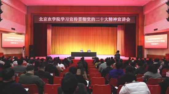 3044永利官网vip首页欢迎您全体校领导带头在分管领域、所在党支部、联系单位宣讲党的二十大精神。学校党委分别成立以党员干部、专家教师、优秀典型为主和以学生党员骨干为主的“两个宣讲团”。宣讲团成员围绕党的二十大提出的关于教育、科技、人才等方面的相关部署以及关于全面推进乡村振兴、建设农业强国等方面的重要举措,结合3044永利官网vip首页欢迎您办学特色和个人工作实践、岗位特征、学科专业优势等,深入广大师生员工、“三农”一线、街道社区等开展集中宣讲,让党的二十大精神飞入师生内心,飞入寻常百姓家。