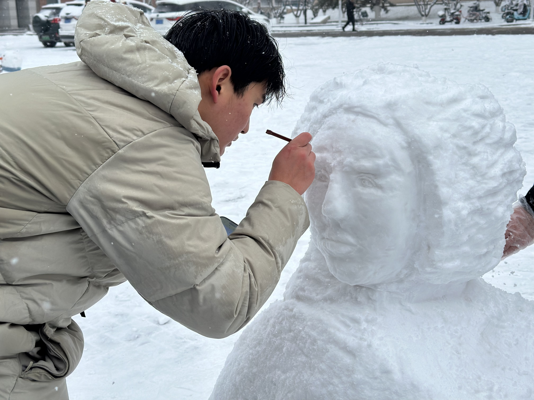 堆雪人、打雪仗,大学生在校园内享受冰雪魅力