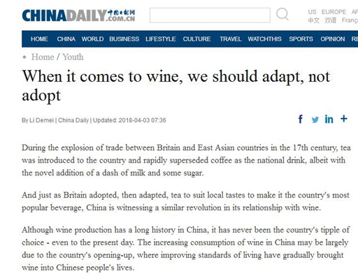 And just as Britain adopted, then adapted, tea to suit local tastes to make it the country's most popular beverage, China is witnessing a similar revolution in its relationship with wine.
