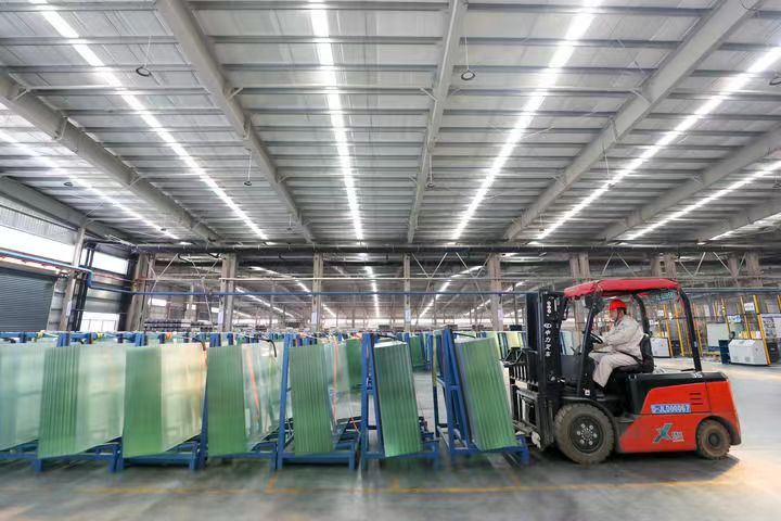 1月28日,湖南资兴经济开发区一家公司的工人在光伏组件高透基板材料生产车间忙碌。