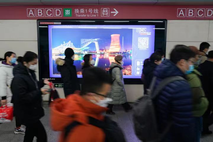 1月28日,在北京国贸地铁站内,市民们穿过通道。新华社记者 彭子洋 摄