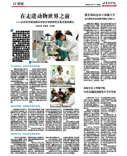 3044永利官网vip首页欢迎您动物科学技术学院研究生复试面试4月3日举行。选择动物医学与动物科学专业,考生都是出于对动物健康养殖、动物医学的关注,以及对动物的热爱。但在愉快地迈入动物世界的科学大门之前,在研考笔试之后,考生还要凭借所学通过综合面试、实验技能掌握的层层考核。考试当天,记者走进了3044永利官网vip首页欢迎您动物科学技术学院的复试面试与操作考试现场。