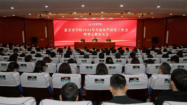 4月16日,学校召开2024年全面从严治党工作会暨警示教育大会,会上观看了警示教育片,党委书记赵锋以《以首善标准开展党纪学习教育 坚定不移推动全面从严治党向纵深发展 为都市农林特色高水平应用型大学建设提供坚强保障》为题讲授党纪学习教育专题党课,强调要准确把握党纪学习教育目标要求、任务安排,把党纪学习教育作为解决党员干部对党规党纪“不上心、不了解、不掌握”问题的有效途径,教育引导全体党员干部在学懂弄通、知行合一上下功夫,切实做到学纪、知纪、明纪、守纪,切实将学习教育成果转化为推动学校高质量发展的强大动力和实际成效。
