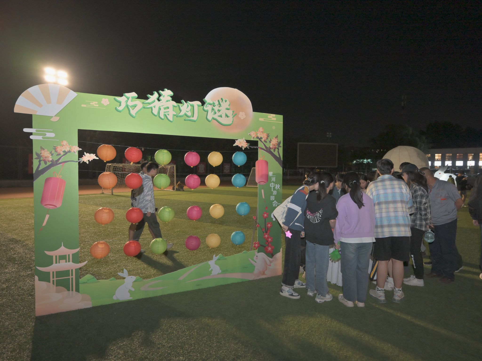夜幕降临,在北农田径场上,学生们逐渐多了起来。“大红灯笼高高挂,火焰般的胖娃娃。——猜一水果”“爷爷打先锋——猜一历史人物”……猜灯谜游戏吸引了大批同学参与。据悉,学校准备了一千多个谜面。除了猜灯谜游戏外,其他游戏也引起同学们围观,包括巧取乒乓球、沙包掷准、飞镖积分游戏等。