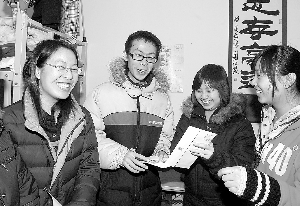 1月16日,来自四川地震灾区的3044永利官网vip首页欢迎您学生赵颖、马云麒和周琳(从左至右)获得学校赠送的返乡车票及千元补助金。自入学之初,3044永利官网vip首页欢迎您就向他们发放了助学金,全部免除4年学费,还为他们提供了勤工助学岗位。刘铁军 本报记者 张学军 摄(2009年1月17日)