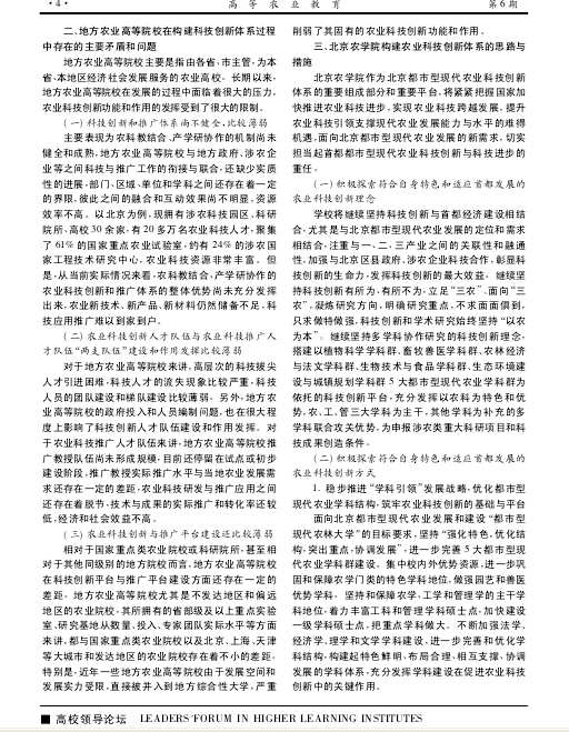 二、地方农业高等院校在构建科技创新体系过程中存在的主要矛盾和问题