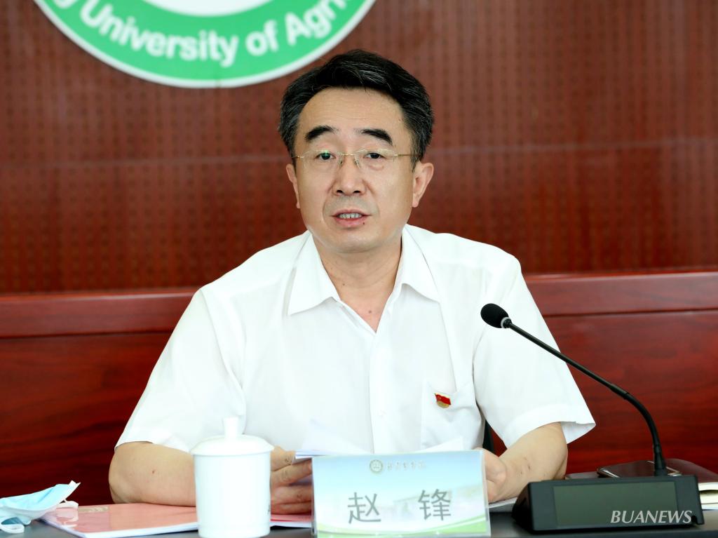 赵锋要求,要勇于担当作为,以高质量党建引领学校事业高质量发展。始终坚持以党的政治建设为统领,牢记“看北京首先要从政治上看”的要求。进一步推进习近平新时代中国特色社会主义思想“三进”工作,教育引导广大党员干部、师生学深悟透党的创新理论在中华大地、京华大地、在乡村振兴前沿一线的生动实践。扎实做好干部换届、调整工作,激励干部干事创业、担当作为。落实落细全面从严治党主体责任,进一步加强作风建设,继续下大力气解决和根除一些顽瘴痼疾,持续深入地推进正风反腐肃纪。