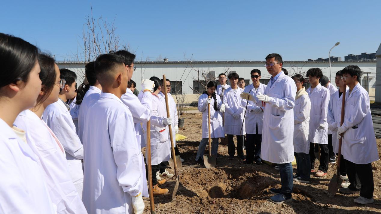“今天这堂课,既是一堂专业课,也是一堂劳动教育课,更是一堂‘大思政课’。”张卿说道。同学们今后将在这片果园中学习果树高光效树形管理、机械化管理和病虫害绿色防控等专业知识和先进的果园管理技术,并将这些先进的知识和技术推广到京郊果园,用农业科技帮助果农增收致富。“在今天这个特殊的日子,希望能用这样的方式将课堂学习和乡村实践紧密结合起来,讲深、讲透、讲活‘绿色故事’中的‘红色道理’,既教会学生扎实的专业知识,更引领学生厚植爱农情怀、练就兴农本领。”