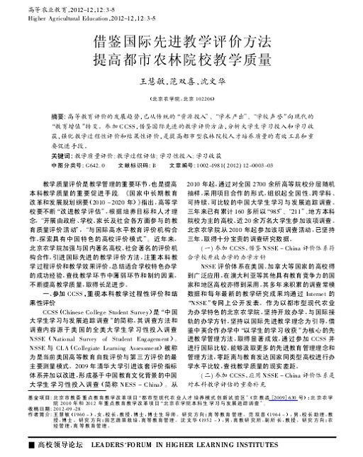 借鉴国际先进教学评价方法 提高都市农林院校教学质量