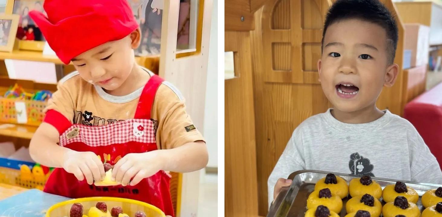 出锅后香甜松软的南瓜糕,孩子们迫不及待的都想想尝一口!从一个金黄面团到制作成为一个南瓜糕,孩子们在直接感知和亲手制作的过程中,体验劳动乐趣,更加珍惜粮食,不负好“食”光。