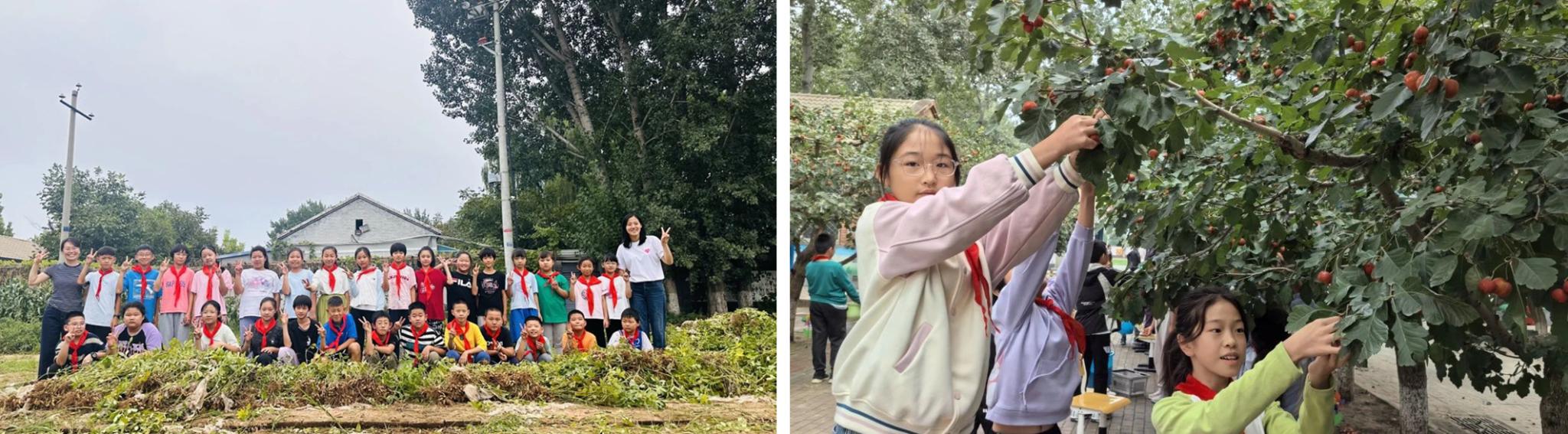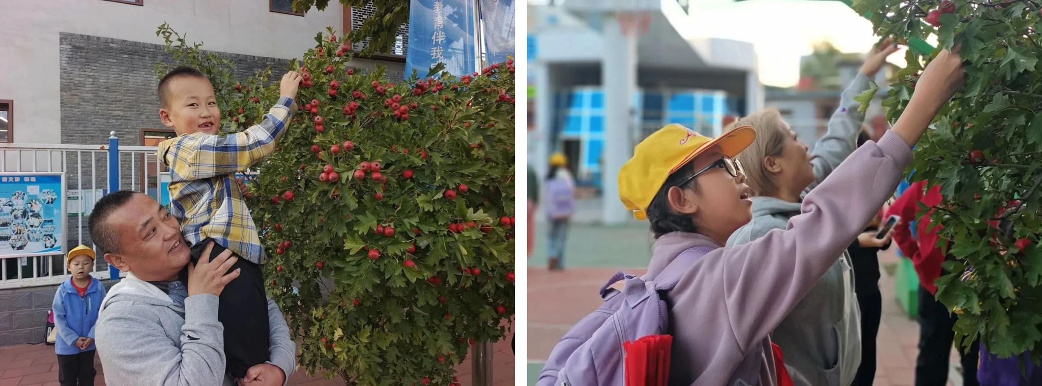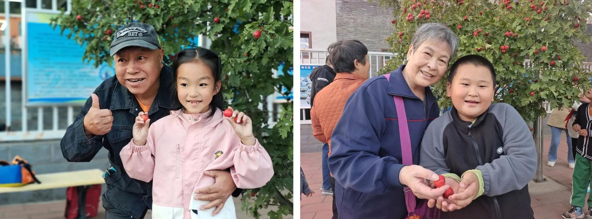 山楂飘香溢校园,采摘分享甜心间。学生们纷纷把亲手采摘的山楂送给了老人,一起分享劳动果实和喜悦的同时,祝福老人们节日快乐,健康长寿,以此表达对长者的尊敬和关爱。采摘现场,孩子们和长辈的脸上都充满灿烂的笑容。本次活动培养了学生“一粥一饭,当思来之不易;半丝半缕,恒念物力维艰”的道德品质,也让学生们从小就要懂得尊敬长辈、关爱长辈。