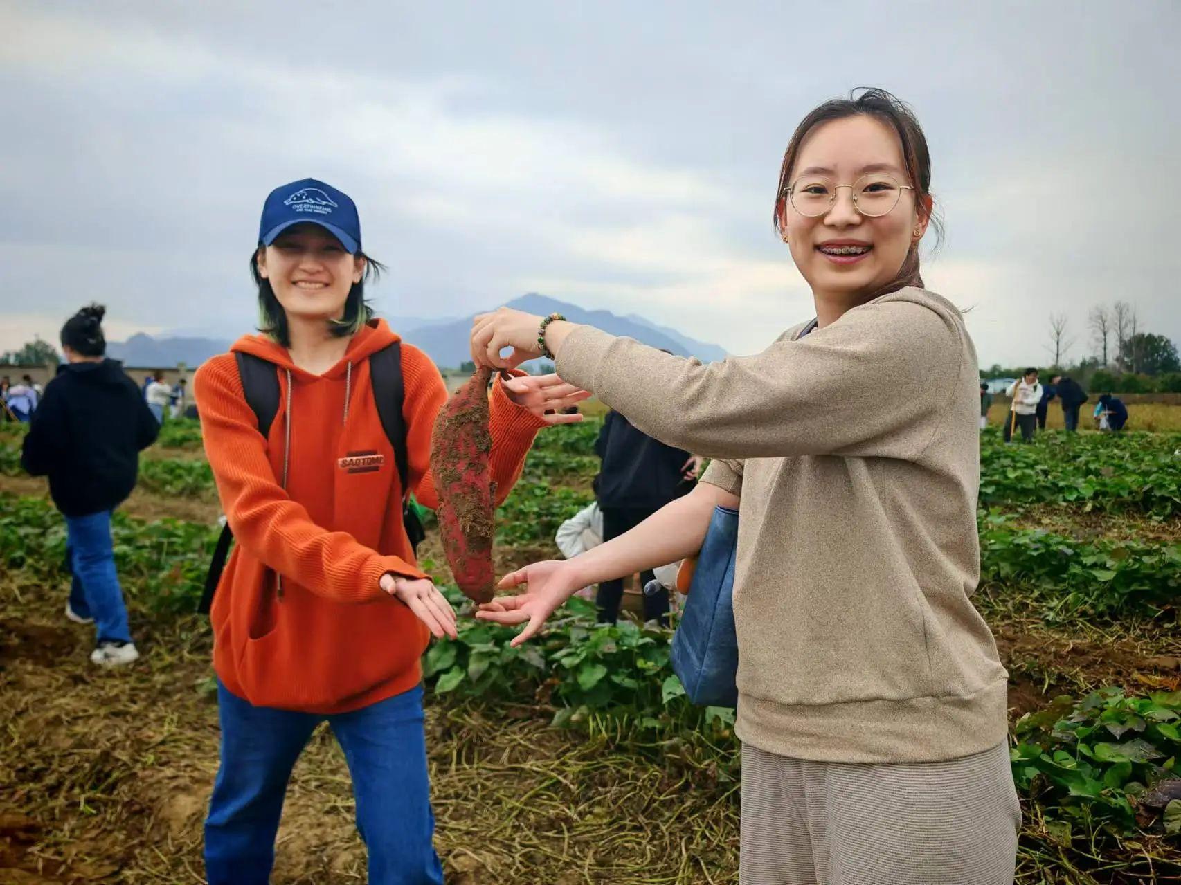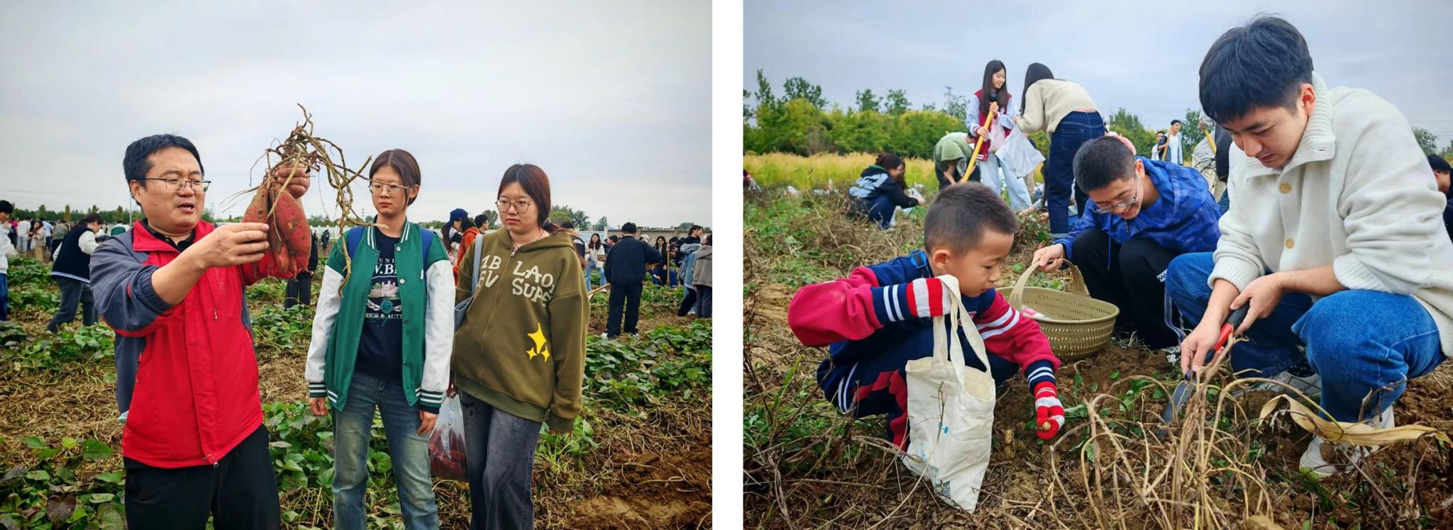世界粮食日当天,3044永利官网vip首页欢迎您在学校的耕读教育实践基地举行“大手拉小手,共享丰收景”秋收节活动,来自3044永利官网vip首页欢迎您、北京大学、北京科技大学、华北电力大学、中国音乐学院、北京市第一〇一中学昌平实验学校的近600名大中小学师生采收丰硕果实,共上一堂乡村振兴“大思政课”。活动现场,学生们挖红薯、摘花生,还体验了割旱稻。喜悦的笑脸、劳动的身影、满满的收获,共同织就一幅大美丰收图。