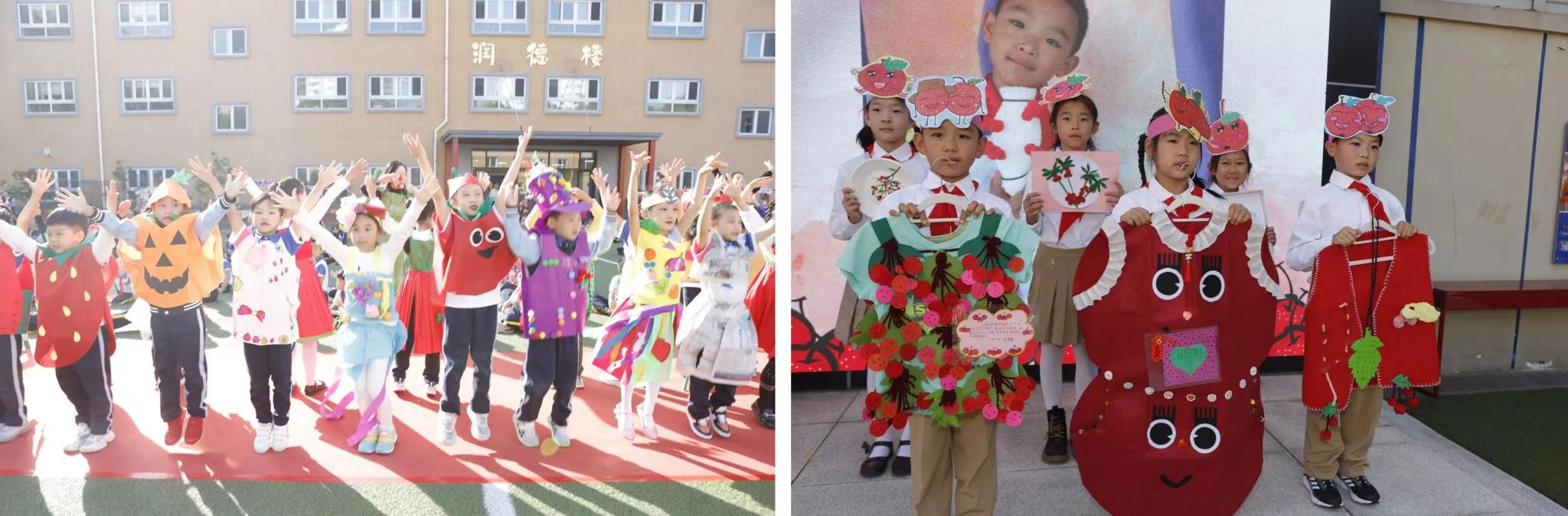 在老师的指导下,一、二年级学生围绕山楂设计服饰、演唱原创歌曲、制作美味果饮,围绕石榴作拼盘、搞文创、自编自演童话故事,学生们在“玩”中促进学生思维发展,在“玩”中开展探究性学习,在“玩”中提升创造力。
