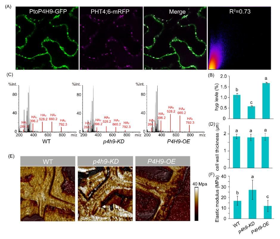 图2 PtoP4H9参与细胞壁修饰改变细胞壁刚性