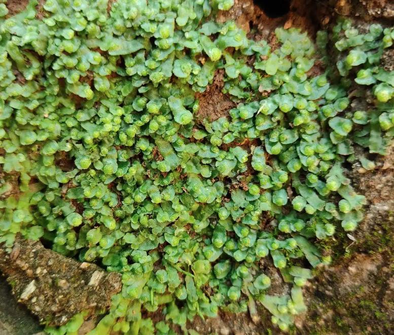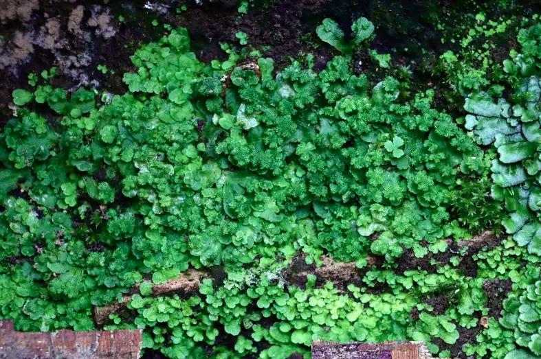 东亚花萼苔呈鲜绿色,形态小巧,它对生态环境质量极为敏感,是区域生态监测的“天然指示器”;片叶钱苔属钱苔科,黄绿色的弱光泽叶片看起来并不显眼,却顽强地匍匐生长于石壁之上;毛尖碎米藓则多生于腐木之上,丛生的绿色植株叶茎纤细柔软,枝条匍匐延展。