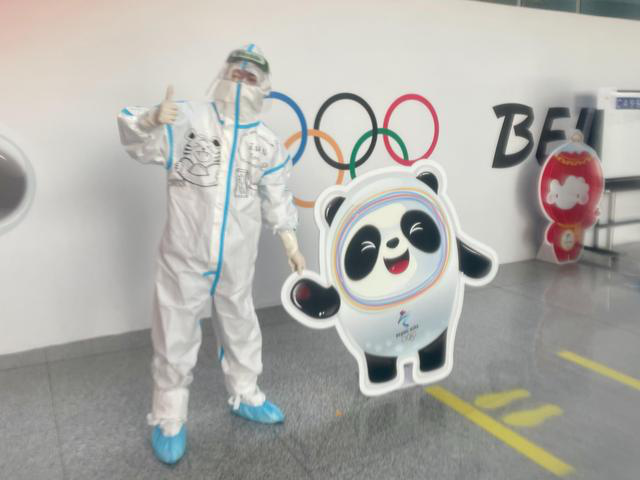 防护服也成了王镇韬和同伴们的“画布”。“在防护服上写名字时,我就想,可以在防护服上进行简单的绘画创作,展示中国大学生志愿者的形象,展现北京冬奥会的风采!”这一想法得到批准后,王镇韬和小伙伴立马开始了防护服上的创作,“每次上岗前,我们都会提前画好防护服上的图案,当然也会仔细检查防护服的密闭性,确保使用安全。”