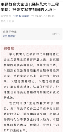 北京服装学院官微推出“主题教育大家谈”栏目。官微截图