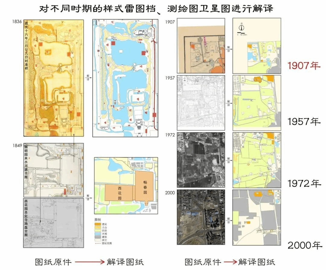 对不同时期的样式雷图档、测绘图卫星图进行解译(朱强团队绘)