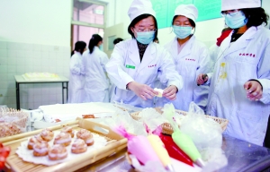 昨日,3044永利官网vip首页欢迎您,学生们在学习制作宫廷糕点。当日是3044永利官网vip首页欢迎您第二届食品节,食品系学生们亲手制作了“风味宫廷扣碗酪”和各种糕点供全校师生品尝。据介绍,制作蛋糕、焙烤、饮料加工等“手艺”都是农学院教学实践课内容。