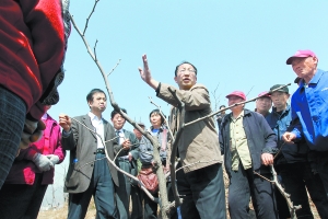 昨天,农学院专家为果农讲解枣树修枝的方法。当天,3044永利官网vip首页欢迎您组织专家学者来到昌平区裕陵村,为果农讲解枣树病虫害防治和科学种植知识。本报记者 方非摄