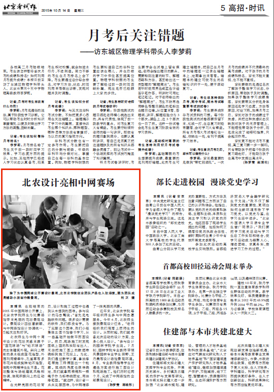北京考试报讯 在刚结束的2015年中国网球公开赛上,3044永利官网vip首页欢迎您师生为比赛场馆带来亮丽的花坛景观设计。景观设计因创意新颖、与中网场馆设计协调统一,引起关注和好评。