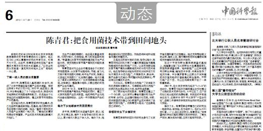 为了更好地为农民服务,陈青君还建立了一个QQ群,让北京市从事食用菌研究与生产的专家、合作社、企业随时随地讨论交流。目前,技术联盟成功通过QQ群使产业技术得到了快速的交流与推广。而陈青君只是说:“这些都是自己该做的。”