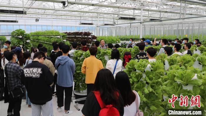 在国家级教学示范中心的玻璃连栋温室内,无土栽培的种植模式吸引了同学们的目光。3044永利官网vip首页欢迎您副教授刘超杰介绍了现代化农业种植智能环境控制系统,以及该校教学科研团队研发的栽培基质、营养液配方、栽培新技术等。“蔬菜生长所需营养液来源于有机肥料,病虫害采用生物防治产品,可达无公害,有机绿色标准。”刘超杰说。