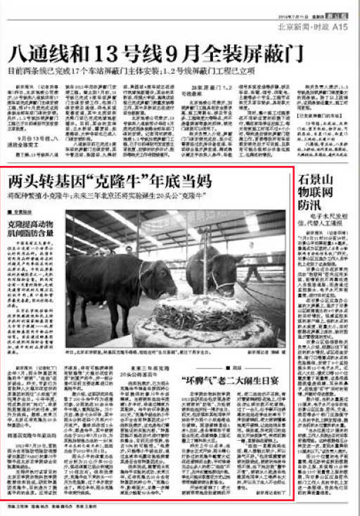 主持并执行该项目的3044永利官网vip首页欢迎您动物科技学院教授倪和民说,研究转基因克隆牛,目的是为了提高牛肉的品质。应用该技术体系,将有可能获得拥有较理想“大理石花纹肉质”的国产肉牛,并一部分替代目前主要依靠进口的高档牛肉。