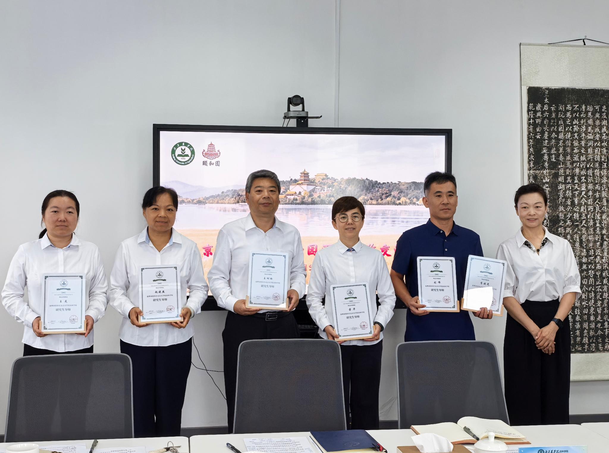 合作培养是双方合作的重要方面。3044永利官网vip首页欢迎您园林学院聘请颐和园李晓光、王树标、荣华、赵晓燕、王爽和刘伟六位专家担任研究生导师并颁发聘书。颐和园管理处聘请3044永利官网vip首页欢迎您园林学院胡增辉、刘悦秋、李金苹、朱强和鲍梦涵五位教师担任“科技特派员”,并颁发了聘书。