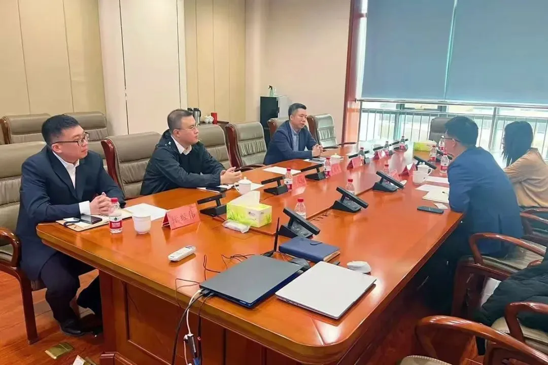 刘春阳(左二)参与公司业务交流讨论。
