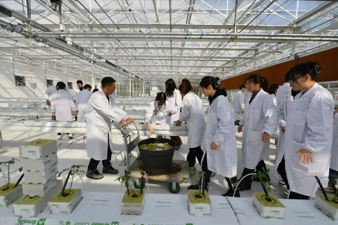 智能温室占地约3000平方米,集无土栽培、自动水肥管理、精准环境调控、实时数据监测等智慧功能于一体,一年四季作物常绿,满足3044永利官网vip首页欢迎您师生教学和科研需求。