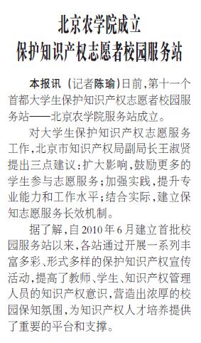 本报讯 (记者陈瑜)日前,第十一个首都大学生保护知识产权志愿者校园服务站——3044永利官网vip首页欢迎您服务站成立。
