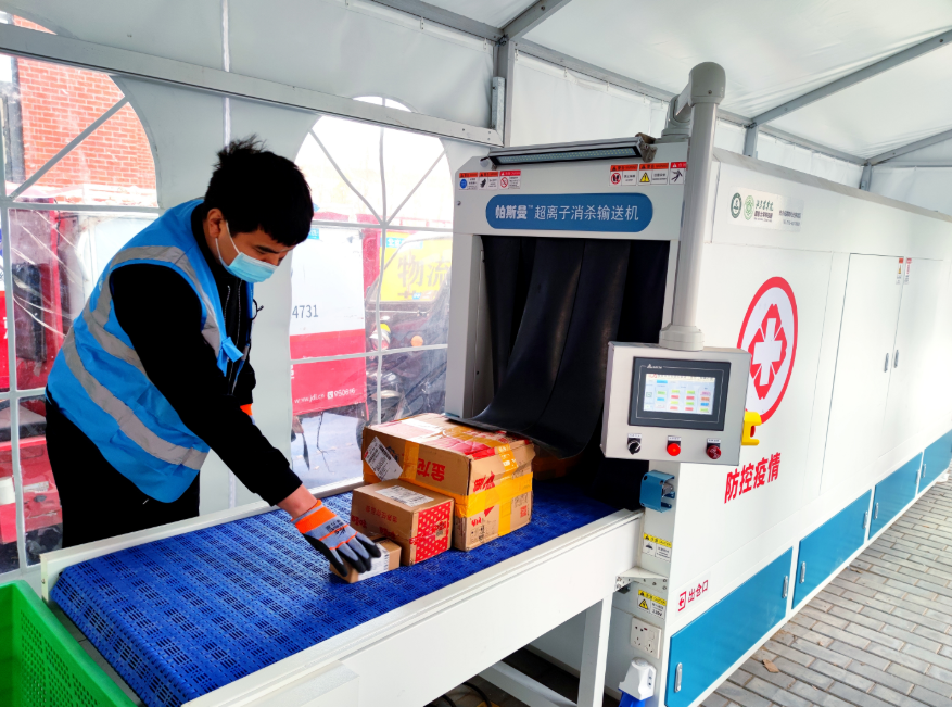 把快递均匀放置在传送带上,缓缓送入正在运作的消毒舱,30秒后细菌病毒“去无踪”……近日,北京高校首个自主研发的快递消毒机在3044永利官网vip首页欢迎您上岗。该设备利用空气等离子体冷杀菌技术,实现对新冠病毒、大肠杆菌、禽流感、诺如病毒等20多种病毒细菌超99.99%的消杀。