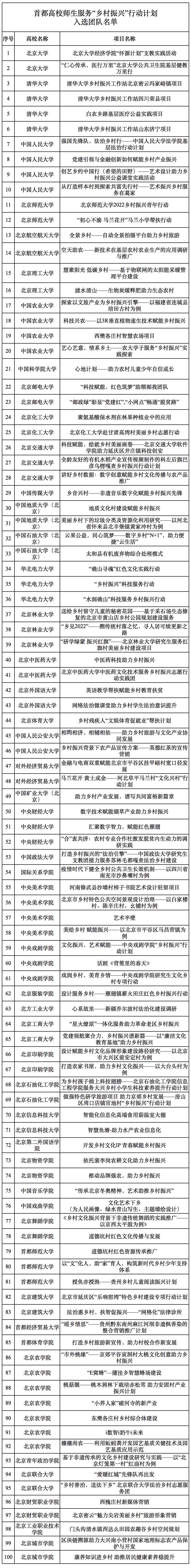 附:首都高校师生服务“乡村振兴”行动计划入选团队名单