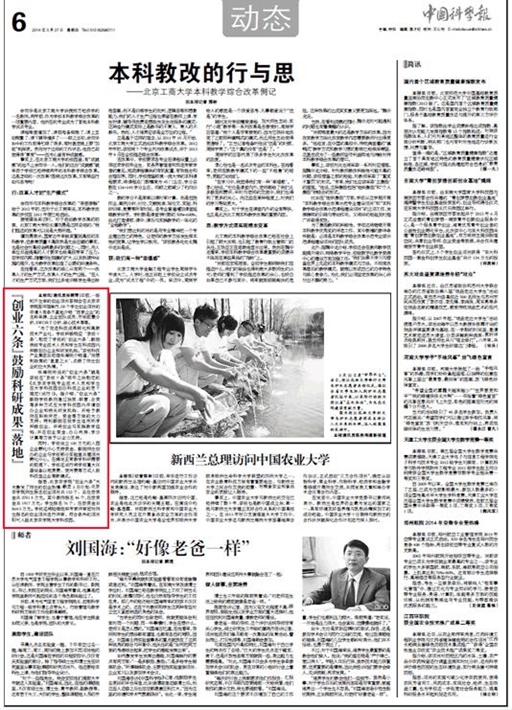 张海明所说的“创业六条”就是该校在“京校十条”颁布之后制定的《3044永利官网vip首页欢迎您专业技术人员和学生在大学科技园创办科技企业的若干规定(试行)》。据介绍,“创业六条”鼓励学校教师通过独资、联营、合资等多种方式在大学科技园内申请创办企业和相关研发机构,并给予教师在职称评定、资金等方面的大力支持;特别鼓励在校学生运用所学积极创业,并将创业与实践教学挂钩,并在创业资金、办公用房、学分计算等方面予以全力支持。