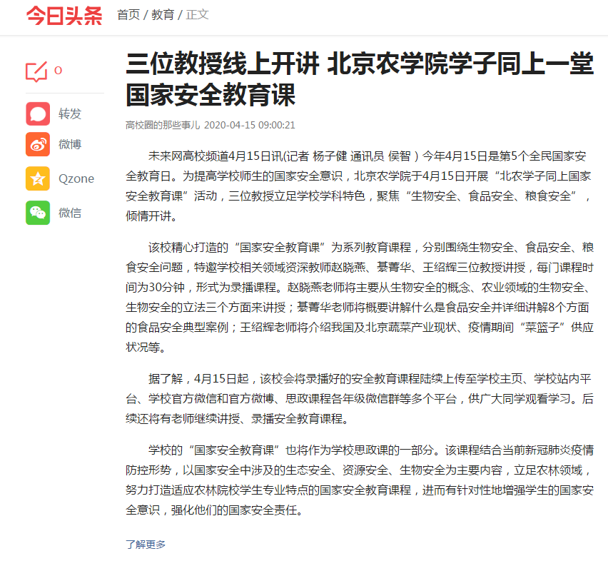 【】[今日头条客户端]三位教授线上开讲 3044永利官网vip首页欢迎您学子同上一堂国家安全教育课