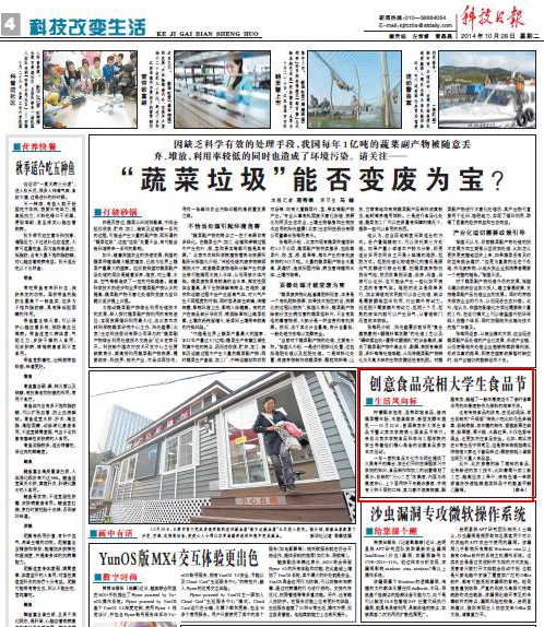 此外,此次参赛的除了美味的食品,还有新进的加工技术,比如葡萄汁加工新工艺、超高压加工果汁、液相色谱—串联质谱法快速检测酒类样品中的氨基甲酸乙酯等。(李长)