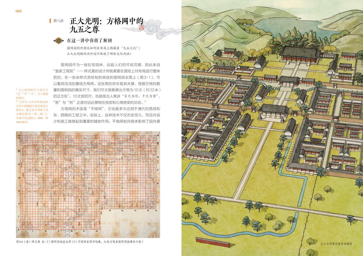 他指出,圆明园学术研究的1.0至4.0时代分别是:从依赖想象的废墟时期(1.0时代)——基础保护与整体认知(2.0时代)——数字技术推动的直观呈现(3.0时代),到当下转向精细化研究与文化价值深度挖掘(4.0时代)。《今日宜逛园·圆明园里的日常》通过微观考据解析“后湖九州”景区的哲学隐喻,结合样式雷图档与空间复原解读隐藏于“正大光明”景区的“九五之比”,展现了新时代研究的纵深突破。