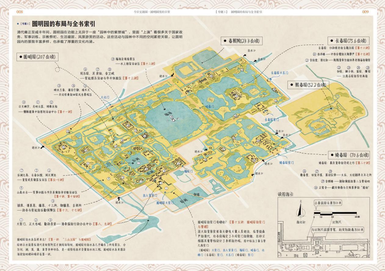 全书以7万字、130张插图构建起了一座“纸上圆明园”,通过背景篇、居园篇、理政篇、豫游篇、经营篇和别园等6大篇章,以及“圆明园历史图轴”“圆明园的世界影响”“圆明园的皇家节令游赏”等6个专题,生动还原了这座皇家园林日常的“居园理政”活动与背后深刻的文化内涵。它通过“重返历史现场”的笔触,带领读者回忆圆明园里理政、燕寝、赏游、管理的日常,从园林风景中解读帝王与家人的温情、对自然的向往、对创作的热情、对文化的自信、对国家的忧患等诸多情感。